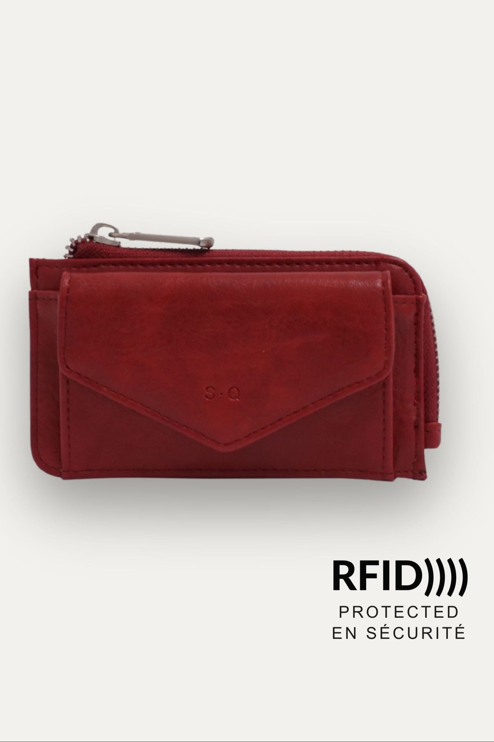 Stay secure and stylish with this slim vegan leather wallet, featuring advanced RFID protection to safeguard your cards from electronic theft. Designed with multiple card slots, a convenient zippered compartment, and a front flap pocket, this wallet keeps your essentials organized in a compact form. Its slim profile easily slips into a handbag or pocket, making it perfect for daily use or travel.