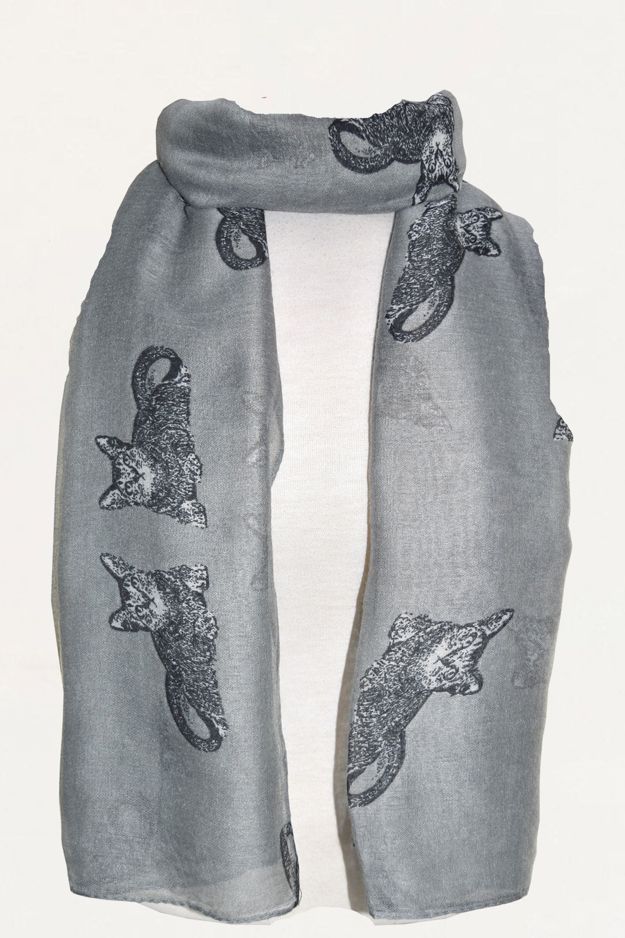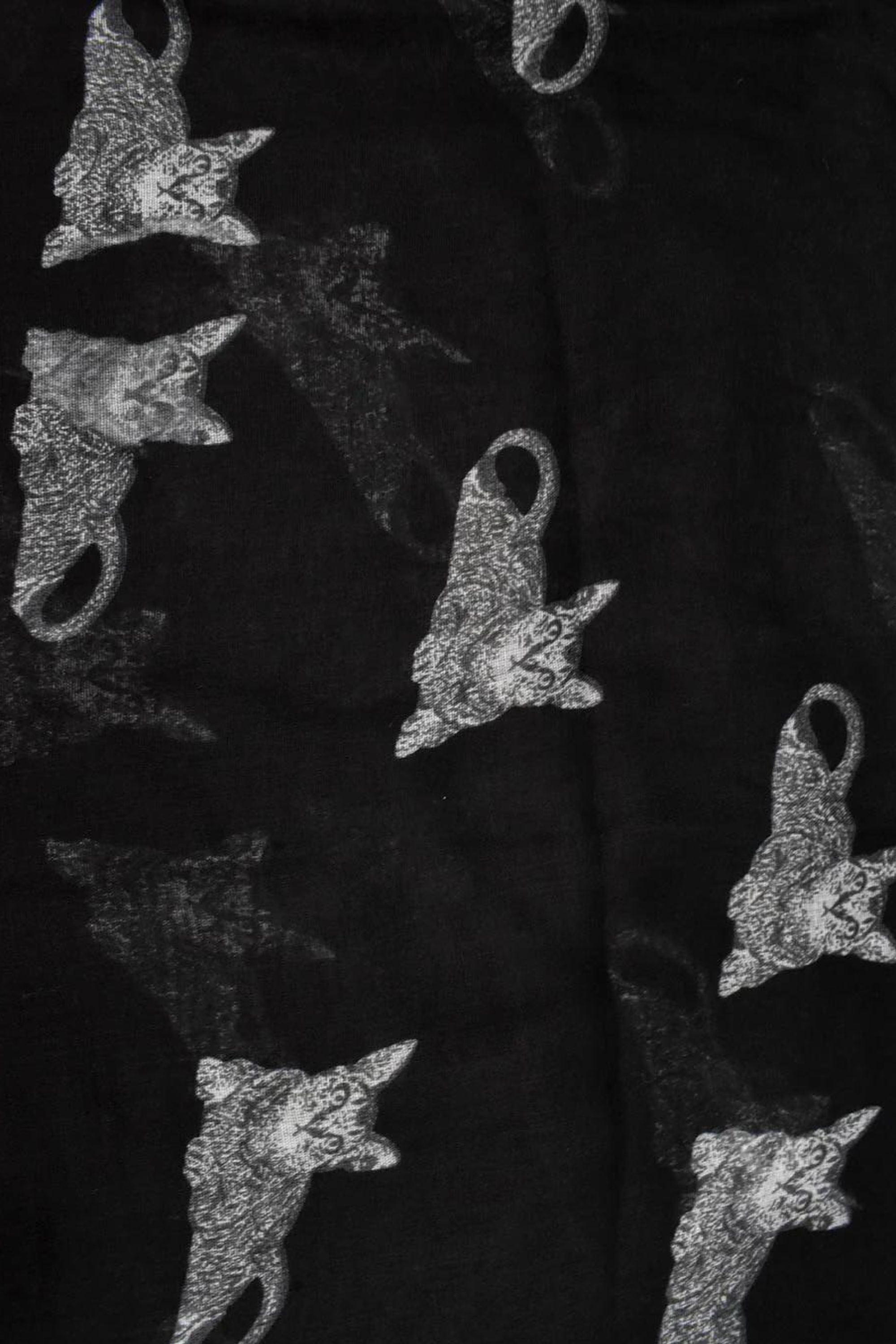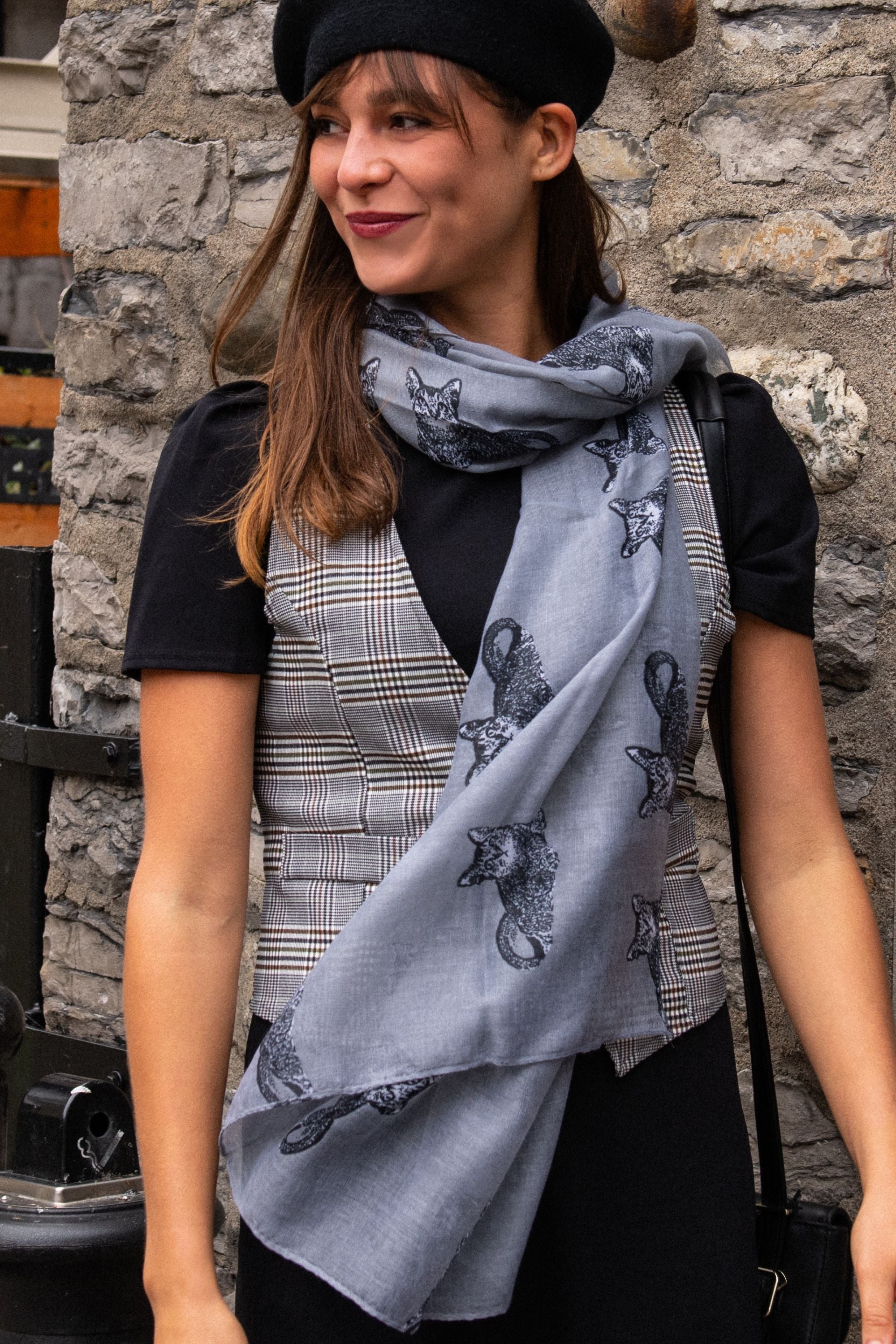 Light weight breathable scarf with cat print black.