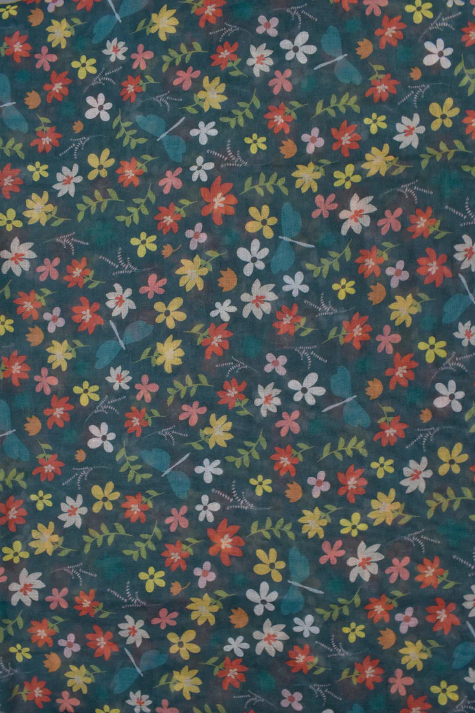 Brighten your day with this lightweight floral scarf featuring a colorful mix of flowers on a soft forest green background. Airy, smooth, and easy to style, it’s the perfect accessory to add a cheerful touch to your outfit. Ideal for spring days, cool summer evenings, or layered with a coat in autumn.