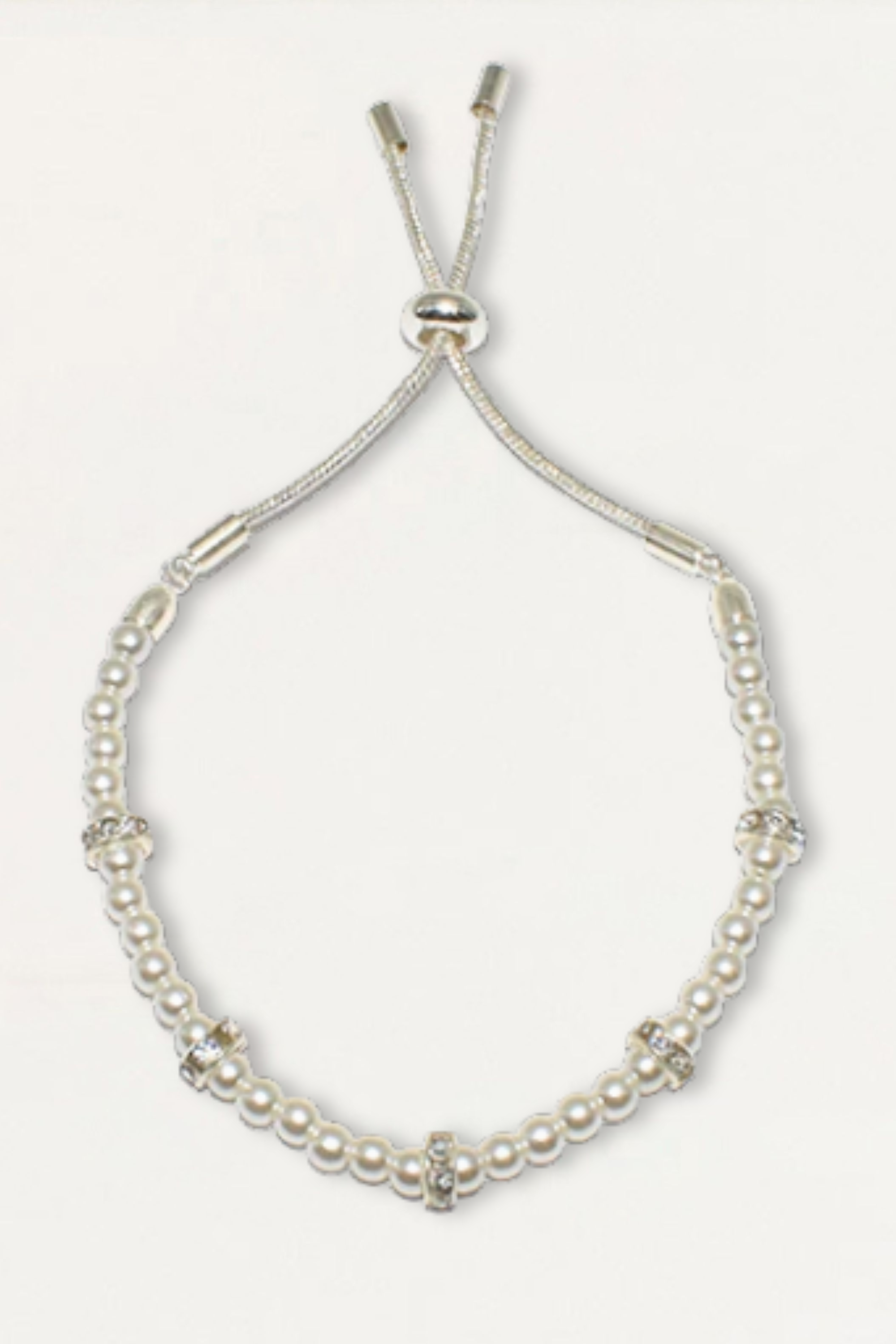 Elegant sliding bracelet featuring small pearls accented with crystal rondelles. A timeless and adjustable design perfect for layering or wearing alone.